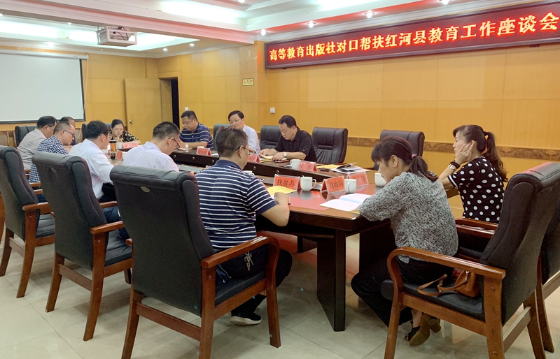 調(diào)研組與紅河縣政府及相關(guān)部門負(fù)責(zé)同志召開了座談會。座談會上,紅河縣縣長和濤介紹了紅河縣脫貧攻堅工作進展情況,以及高教社援助紅河縣教育事業(yè)發(fā)展情況及部分學(xué)校辦學(xué)情況。高教社黨委書記宋永剛表示,歷史把高教社和紅河縣緊緊地連在了一起,高教社將按照教育部黨組關(guān)于教育脫貧攻堅工作的總體部署,繼續(xù)真心真情真幫,與紅河縣并肩打好脫貧攻堅這場硬仗;要更精準(zhǔn)、再發(fā)力,緊緊圍繞“紅河所需、高教所能”的幫扶原則,在總結(jié)5年工作經(jīng)驗基礎(chǔ)上,研究制定近三年扶貧工作規(guī)劃,做到目標(biāo)明確、措施到位、監(jiān)督有效。在雙方共同落實好、實施好現(xiàn)行幫扶計劃,推動紅河教育均衡化發(fā)展的基礎(chǔ)上,以更高的政治站位研究提出教育脫貧攻堅的長效機制。要著眼于教師隊伍整體素質(zhì)提升,幫助紅河縣建立教師發(fā)展中心,以點帶面,發(fā)揮引領(lǐng)和示范作用,為紅河縣教育質(zhì)量提升,為教育脫貧創(chuàng)建源頭活水。座談會由高教社掛職干部紅河縣副縣長毛紅斌主持。