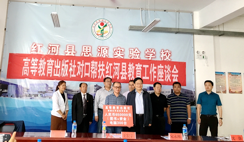 高教社向紅河縣捐贈總計65萬元的資金和圖書、300臺電腦