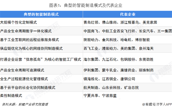 近幾年,工業(yè)和信息化部門(mén)持續(xù)組織實(shí)施智能制造試點(diǎn)示范專(zhuān)項(xiàng)行動(dòng),挑選出一批先行先試的試點(diǎn)示范項(xiàng)目,有效帶動(dòng)了我國(guó)智能制造的發(fā)展。目前應(yīng)用較為廣泛的有九大典型智能制造模式,分別是大規(guī)模個(gè)性化定制、產(chǎn)品全生命周期數(shù)字一體化、遠(yuǎn)程運(yùn)維、社會(huì)化協(xié)同、產(chǎn)品全生命周期可追溯、全生產(chǎn)過(guò)程能源優(yōu)化管理、網(wǎng)絡(luò)協(xié)同制造及智能工廠模式。每種模式都有其代表性企業(yè),例如,大規(guī)模定制化模式中,青島紅領(lǐng)、佛山維尚、浙江報(bào)喜鳥(niǎo)、美克家居為領(lǐng)先企業(yè),在產(chǎn)品全生命周期可追溯模式中,伊利集團(tuán)、蒙牛乳業(yè)、康緣藥業(yè)、麗珠制藥為主導(dǎo)企業(yè)。