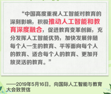 國際人工智能與教育大會上,習(xí)近平主題賀信中提到,要積極推動人工智能與教育的深度融合,進(jìn)教育變革創(chuàng)新,要充分發(fā)揮人工智能優(yōu)勢。