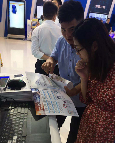 觀眾在智博會(huì)現(xiàn)場體驗(yàn)服裝行業(yè)的“一分鐘換裝技術(shù)”